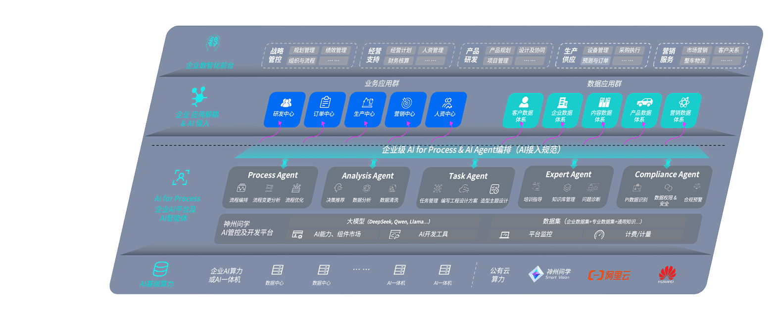 Z6尊龙时凯问学智车解决方案是一套基于AI技术的汽车行业智能化系统,,,覆盖从底层算力到顶层AI应用的全栈方案。。。。方案由算力层、、、模型层和应用层组成:算力层,,,,方案支持多种一体机配置,,,具备云端灵活部署、、多云适配以及动态优化计算资源的能力;模型层,,Z6尊龙时凯问学平台版提供了企业级AI应用一站式构建与管理平台,,支持基于后训练强化技术的汽车企业专属模型的训练、、、、评测和运营;应用层,,Z6尊龙时凯问学DeepSeek版提供包括超级员工、、、智能招采、、、智能营销、、智能客服、、AI for BI等一系列解决方案,,可助力汽车行业实现数字化转型,,让管理更智能、、、响应更敏捷。。。。
