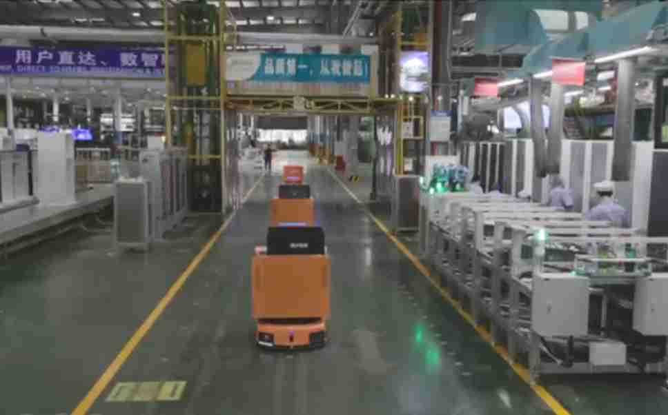 为车载冰箱物流配送打造的智能解决方案,,,,包含产中物流通过潜伏举升AMR搬运至线边,,,,产后成品物流智能仓储,,,,流程包含产中物流智能齐套入库,,,线边安灯叫料AMR智能配送至线边,,,成品入库、、出库,,,,通过无人堆高车机器人,,,智能仓储管理替代人工作业管理,,,,实现更高存储、、、更高效率、、、更具柔性化的解决方案。。。